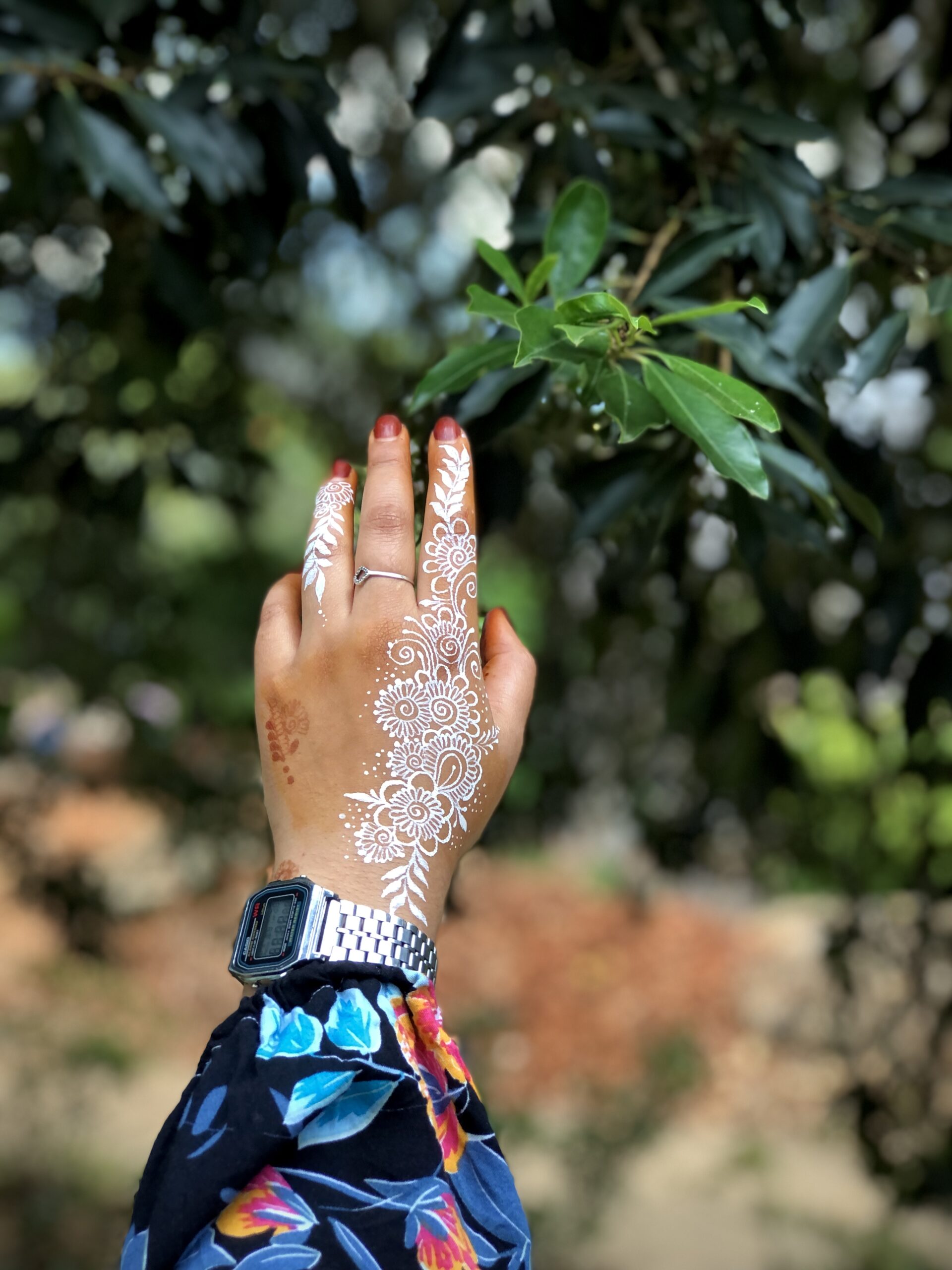 Note: This is not traditional henna and does not stain the skin. Designs last a few hours depending on placement and care.